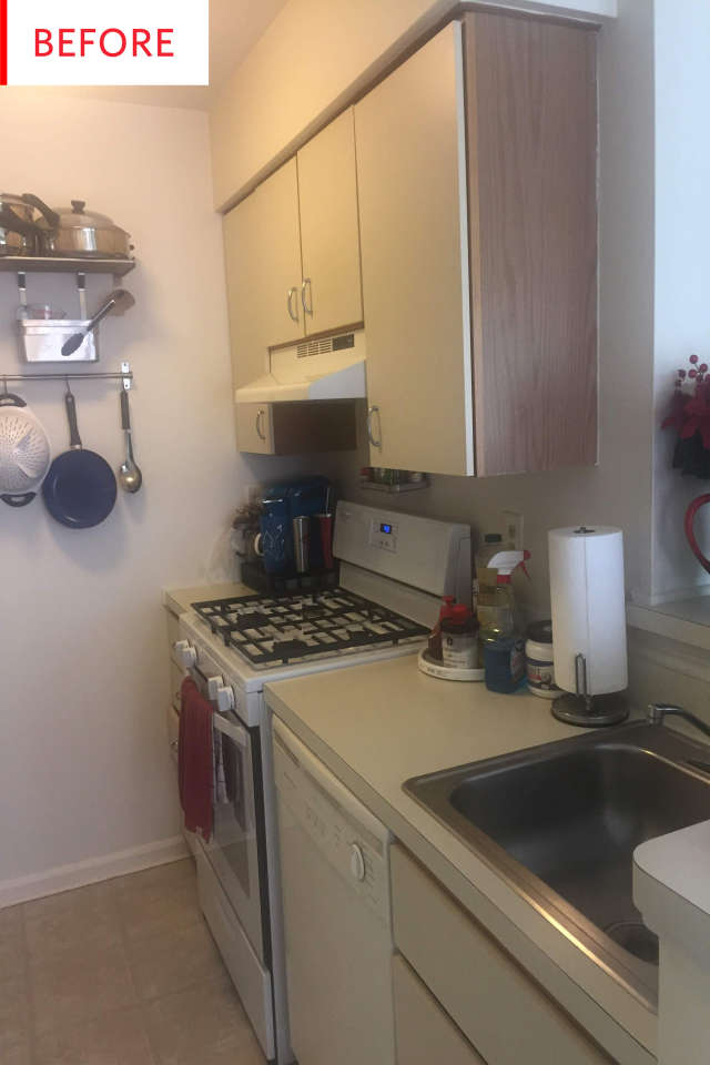 This yellow and brown cooking area felt outdated and not aesthetically pleasing to tenant Gabrielle Delaney and her boyfriend Dan Scura, who share a one-bedroom apartment in New York. Although they are renters and therefore limited with what changes they can make, this didn't stop Delaney from transforming the kitchen that made her "unhappy."