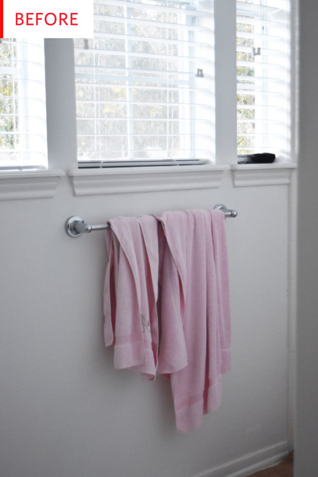 When pink towels weren't enough to liven up an entirely white bathroom, one intrepid DIYer spent the weekend—and just $100—transforming the room with color.