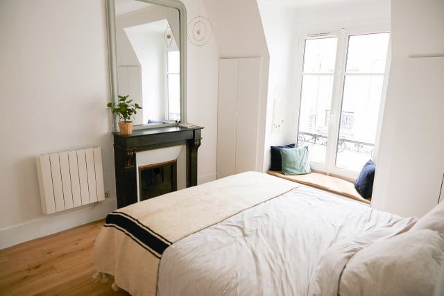 My husband and I bought the apartment in 2016 and use it as our base when we are in Paris. We are both photographers. It's in a really vibrant area of Paris called Pigalle, which is just below Montmartre. It's on the sixth floor (without an elevator) but there is a window on the roof, which we replaced with a Velux window. When you go onto the roof you have views of the Sacre Coeur and the Eiffel tower. You feel on top of the world!