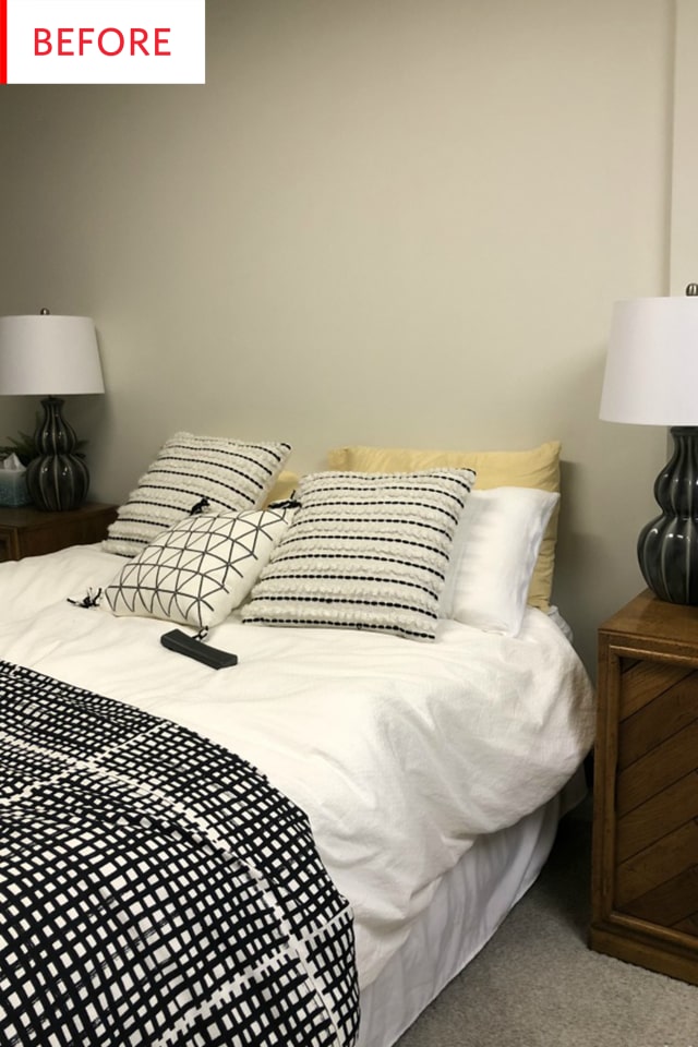 This basement guest bedroom was nicer than a lot of master bedrooms, but its owner knew it could be even better—on a budget. Let's see how $100 totally changed this room's look.