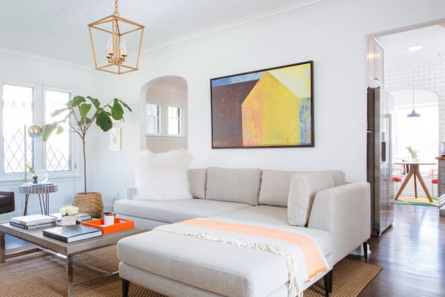 The influx of guests this time of year always kickstarts my home to-do list. Install curtain rods, update the showerhead, and oh yeah, finally dress that naked wall. Instead of spending time searching for that perfect piece of artwork, make one instead. Painting your own art not only saves money, but lets you coordinate colors throughout your home and truly make the space unique and yours. Plus, it's a lot easier to hang one to three statement pieces versus a full-blown gallery wall.