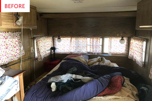 This "disastrous" 1970s trailer is about to become a highly inviting guest room, parked on a lake and packed with vintage charm. And all it took was $500—and a lot of hard work.