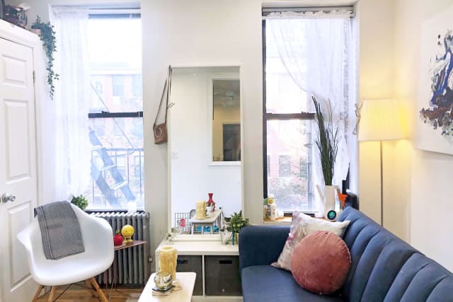 I'm a designer in New York, and I have moved A LOT. I had lived in 12 apartments in the five years prior to May of 2018. Rome wasn't built in a day, but I pride myself on making wherever I am feel like home as quickly as possible. When I was living out of a suitcase and called my blow-up mattress my bed, I would lay the luggage flat, accessorize it, and called it a nightstand.