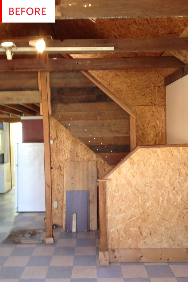 As if a plywood stairway weren't enough, this San Francisco house boasted plywood ceilings, peeling floors, and plastic bathroom walls—all in all, a "really terrible looking" 720 square feet. After a major renovation, the home now looks bright and modern, no plywood required.